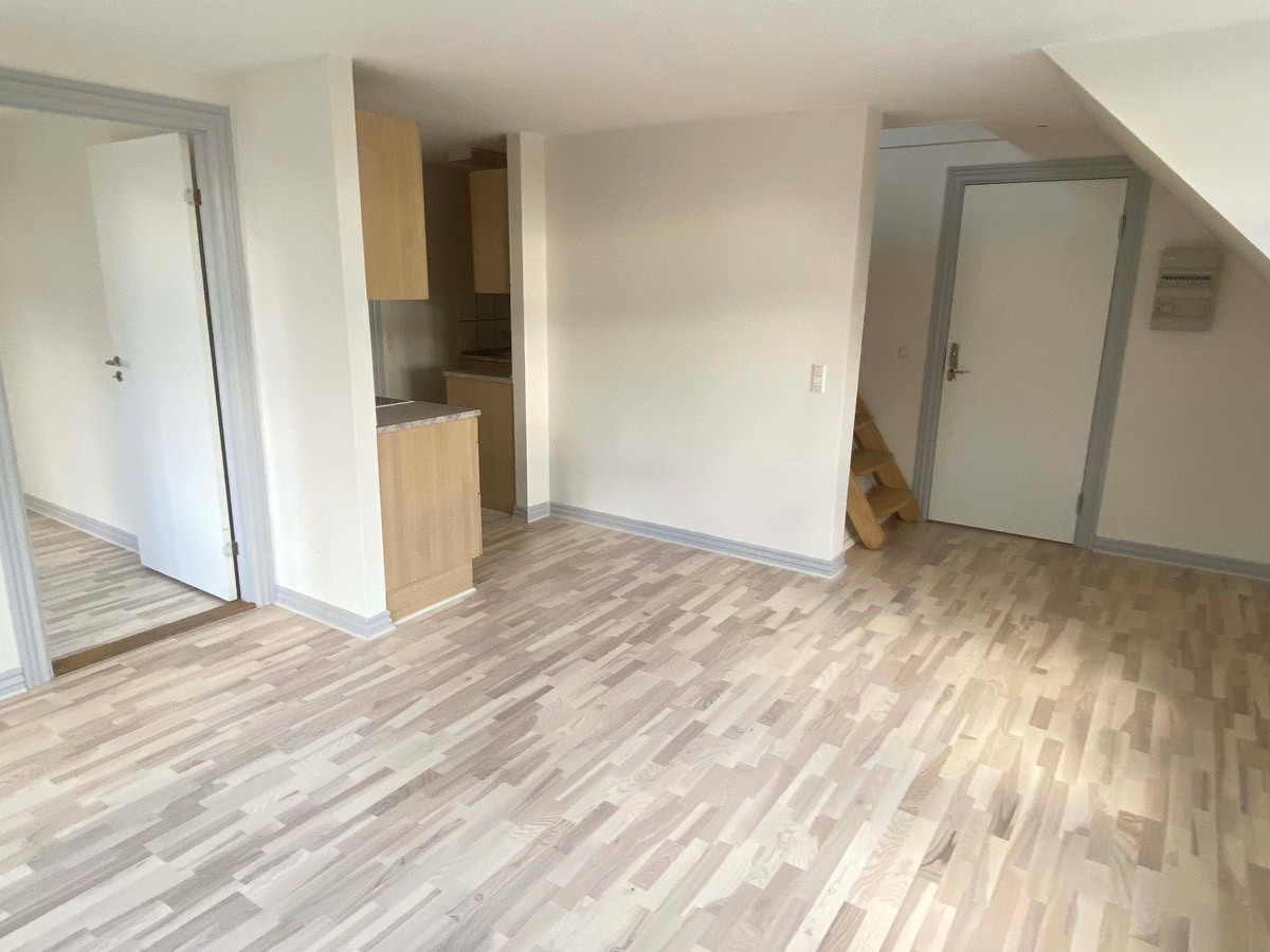 På attraktiv adresse udlejes denne velindrettede lejlighed på 54 kvm med en stor og dejlig hems, der giver ekstra plads og en hyggelig rumfornemmelse.