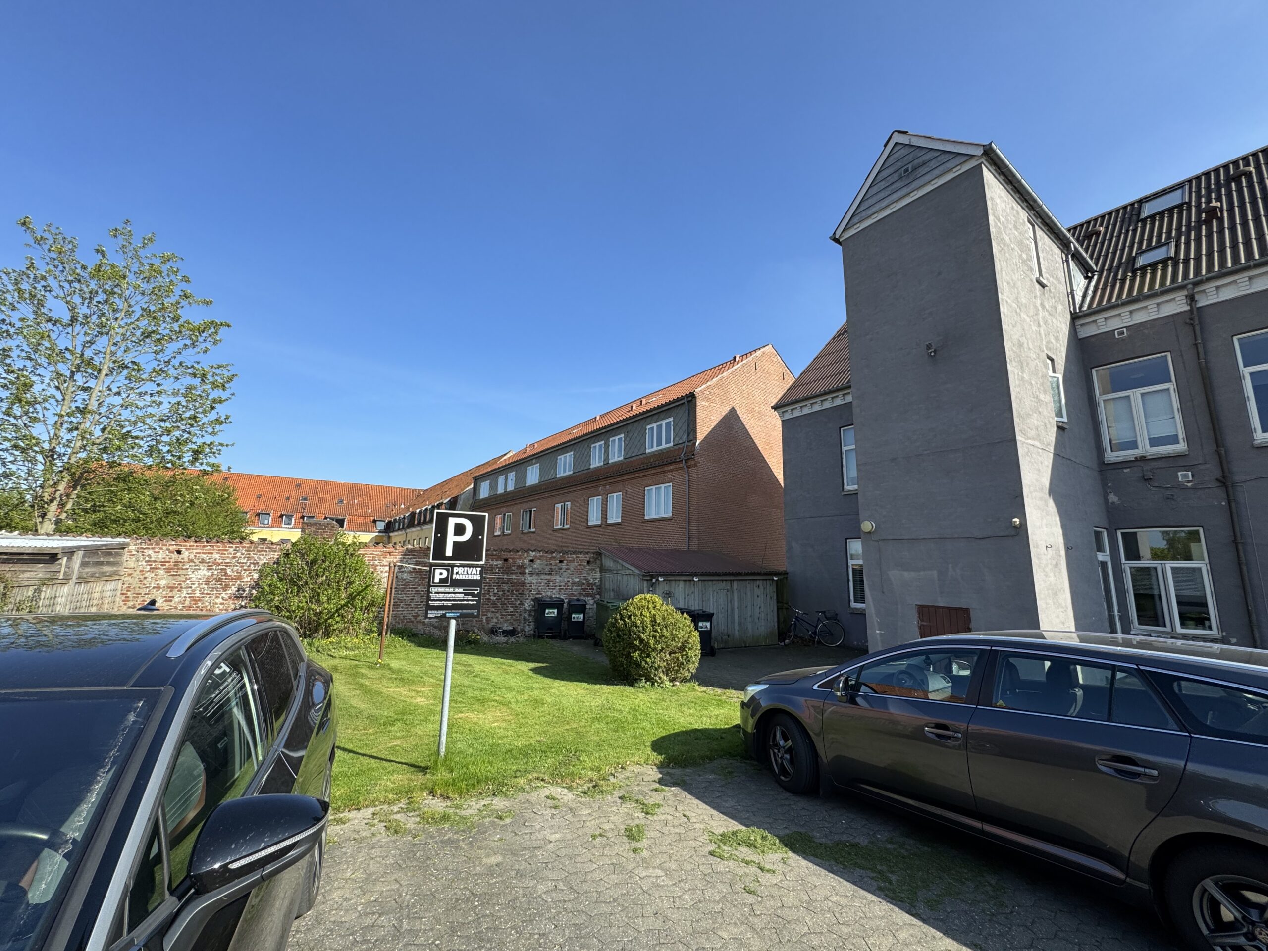 Ejendommen byder på et hyggeligt gårdmiljø med cykelskur samt privat parkering (kort udstedes), hvilket er en stor fordel i den centrale beliggenhed.